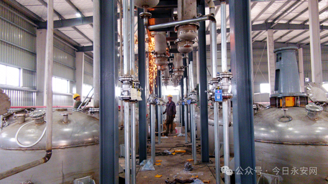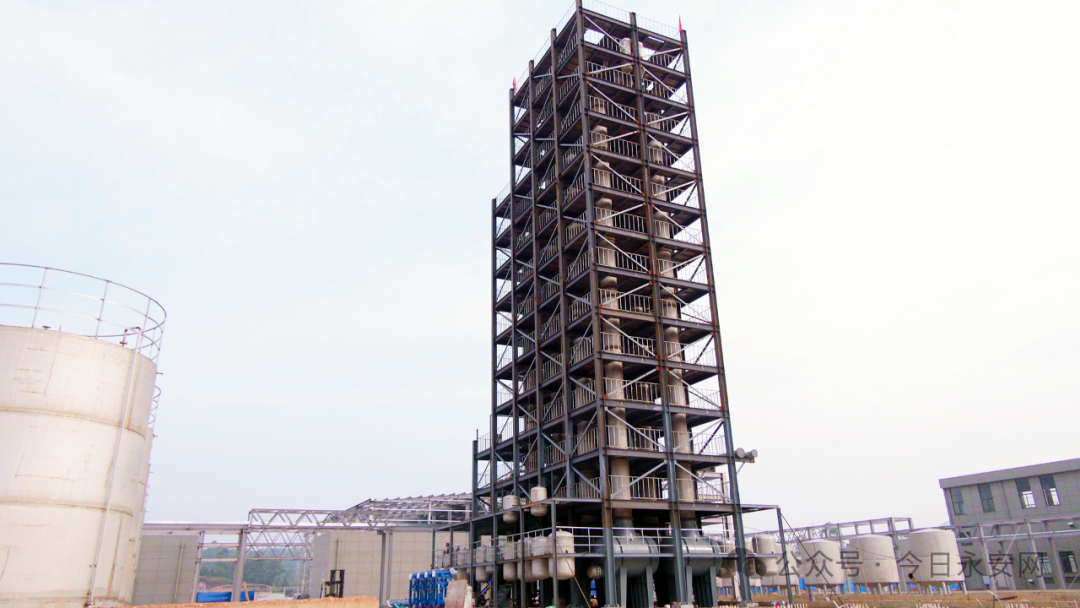 At the construction site, standing a tall rectification tower, machinery roaring, welding flowers flying, workers are busy in an orderly manner. The surrounding plant, warehouse, tank farm and other supporting facilities have been completed, and the whole project has begun to show its scale, and trial production is expected to be carried out in August. At present, the construction side of the project is accelerating the progress of the project under the premise of ensuring safety and quality through additional manpower, overall coordination and other measures.